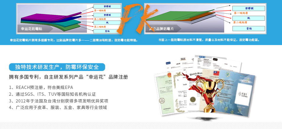 幸运花防霉贴片独有多层膜专利